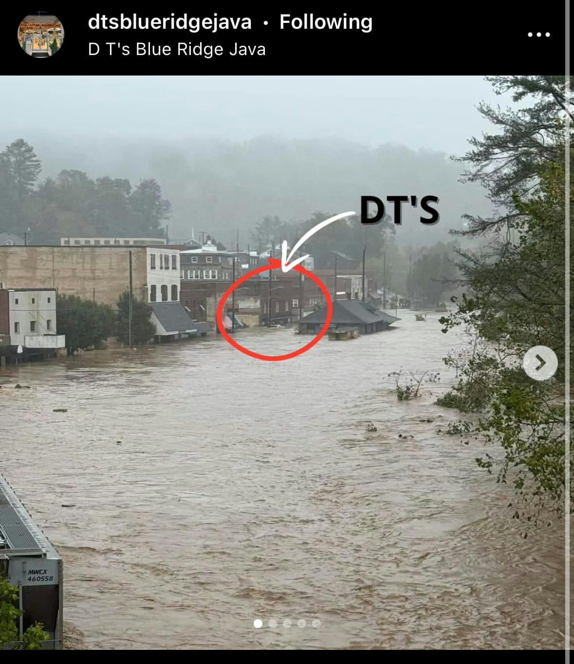 The "DT's" circled in this photo is for DT's Blue Ridge Java, the community coffee shop and a local staple. I remember having coffee there with Cara’s family back in 2020. I still can’t believe what I’m seeing in these photos.