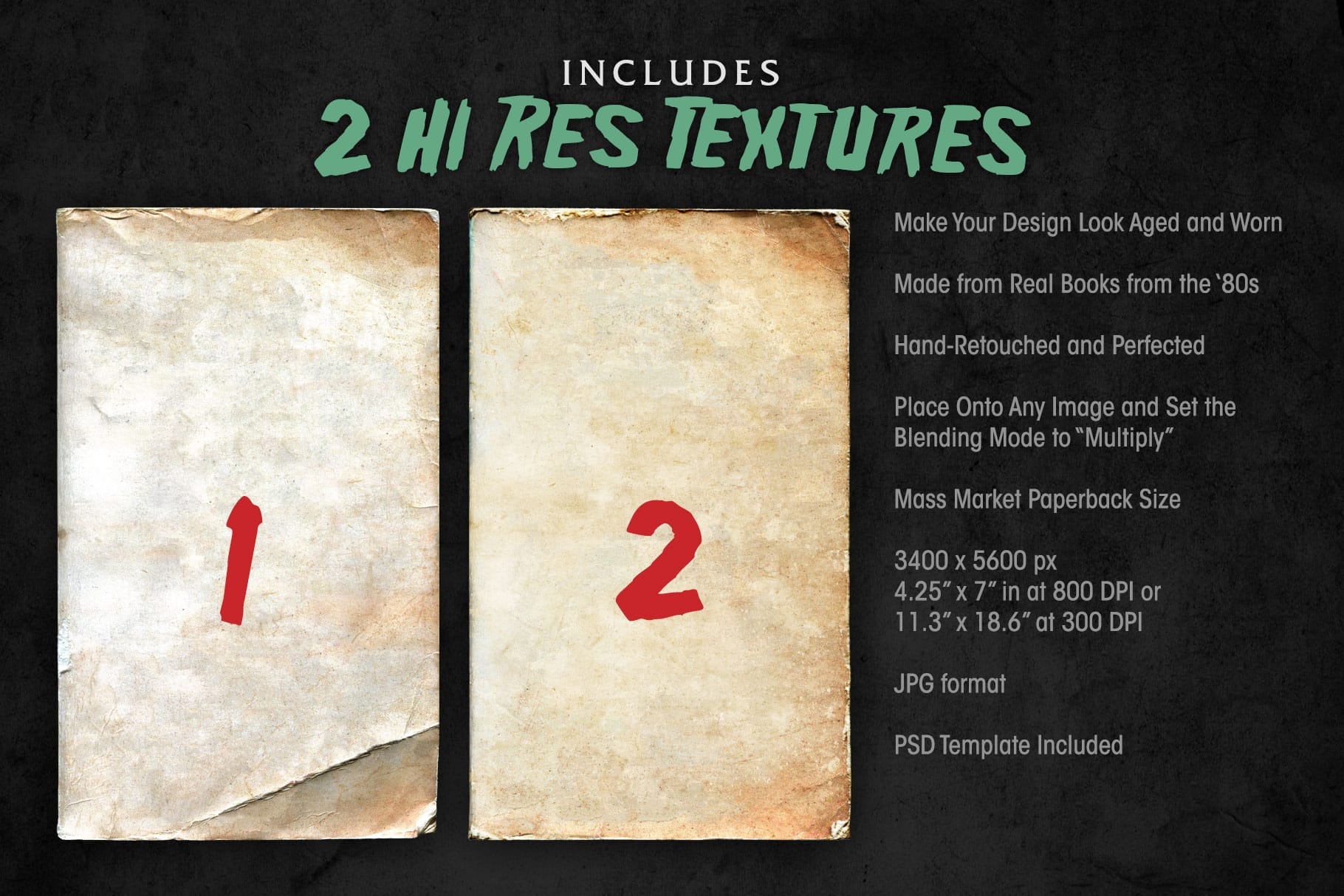 The highly anticipated sequel to the original Worn Paperback Textures! This edition works best for medium to light backgrounds.