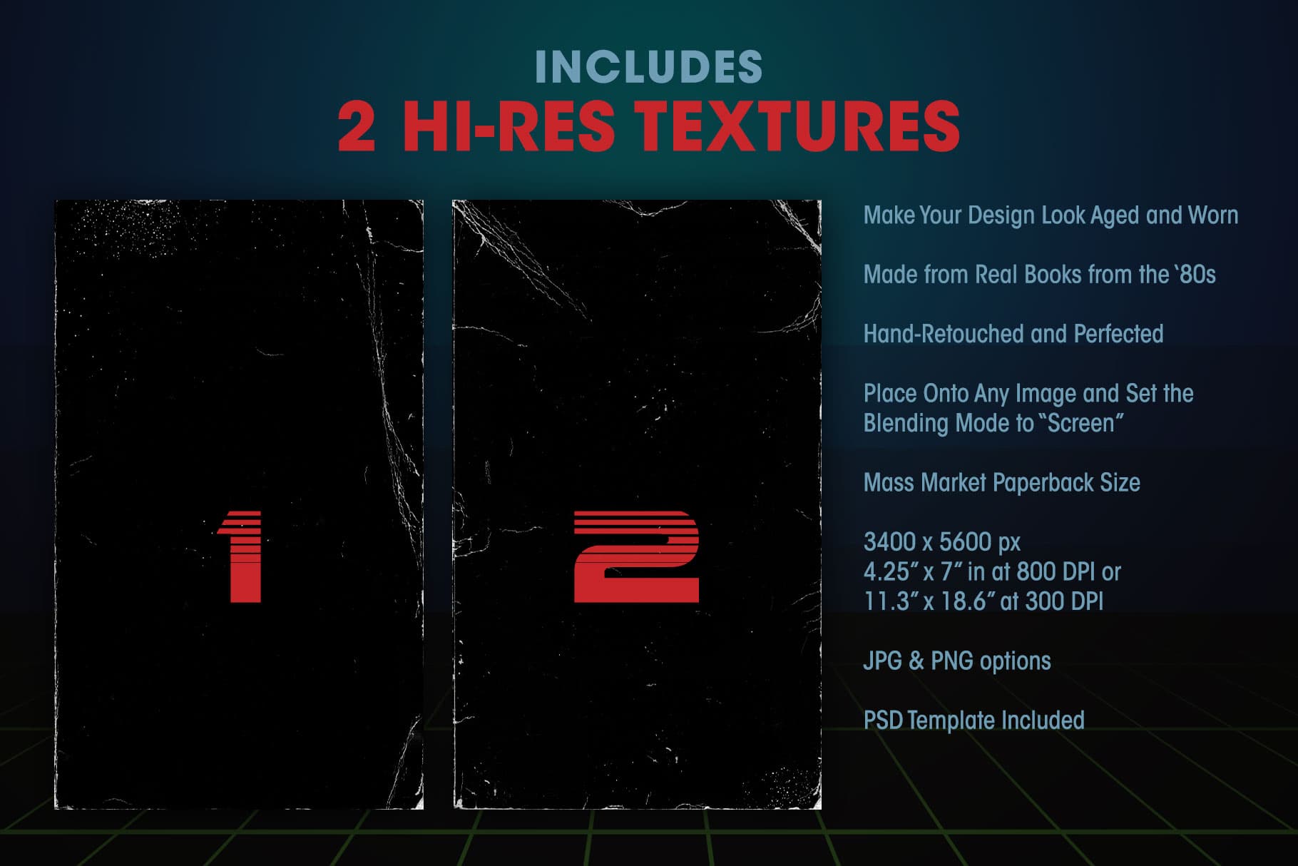 Instantly make your design look aged and worn. Super easy to use. Includes 2x hi-res textures and a PSD template with additional options like dust, dirt, and color. I've also included a file for Affinity Designer.